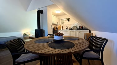 Nádtető, vastag falak, régies részletek — mindezt úgy újítottuk meg, hogy a mai kényelem tökéletesen érezhető legyen.