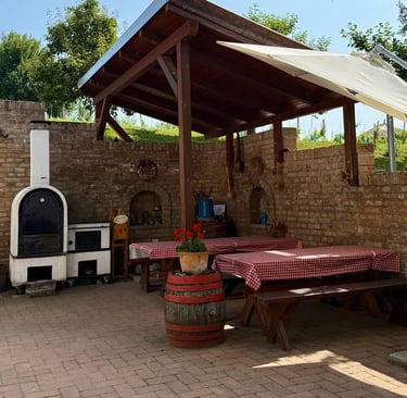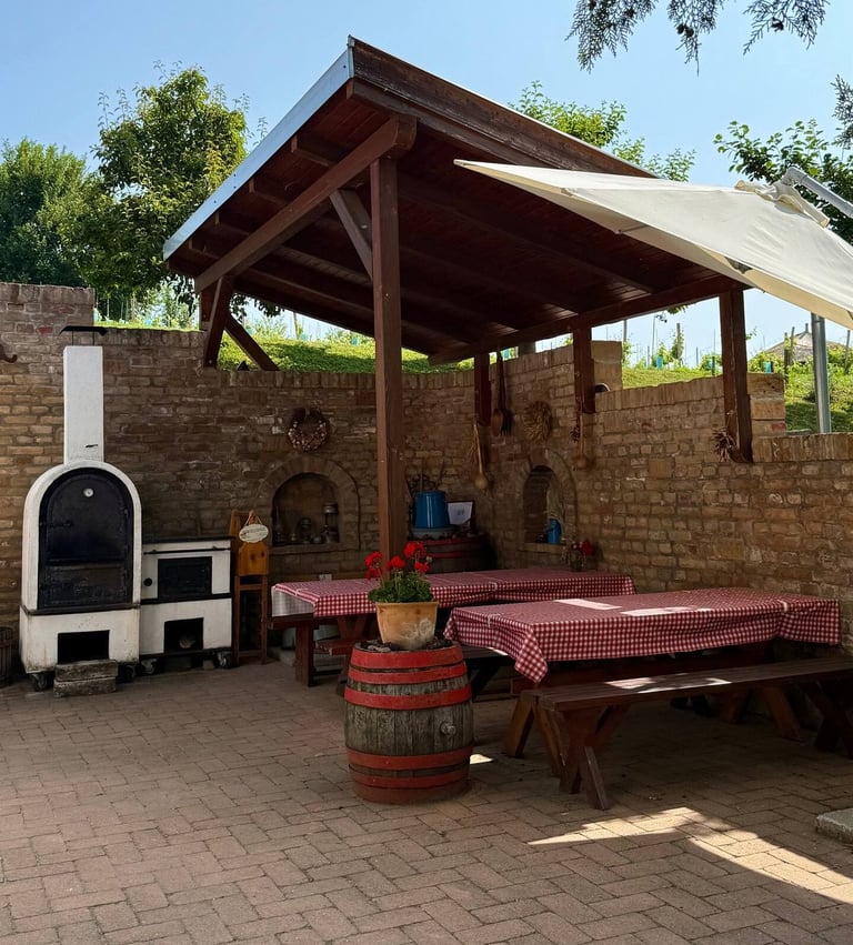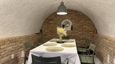 Ez a boltíves pince volt a borászat első otthona, ahonnan minden elindult. Vastag falai, a hűvös pince és a kemence melege egyszerre őrzik a múlt nyugalmát és a jelen kényelmét.